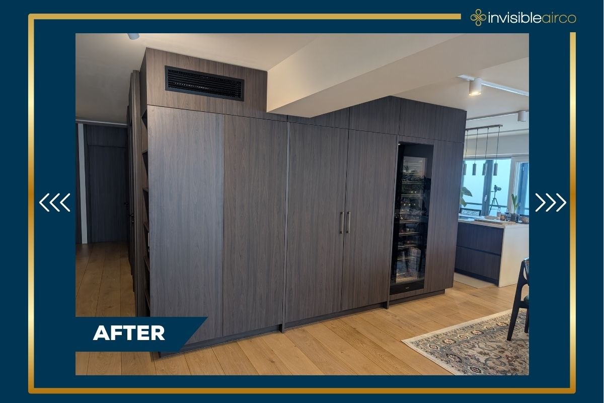 In this beautifully renovated apartment in Rotterdam, we installed our Invisible Airco solution – without the need for an outdoor unit. The client’s wish was clear: to enjoy a comfortable indoor climate without visible installations, perfectly in line with the refined interior design.